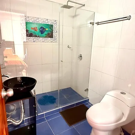 A Hosteria La Pintada hostel magán fürdőszobáinak egy része zuhanyzóval van felszerelve a vendégek kényelme érdekében.